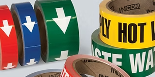 INCOM Manufacturing Group offers specialty safety and industrial tapes, identification marking signs, and tags for workplace safety and organizational compliance applications. Their full product line includes anti-grip grit tapes, reflective tapes, barricade tapes, glow-in-the-dark tapes, floor marking tapes, workplace safety tags, OSHA safety signs, dangerous goods placards, warehouse rack labeling, and heavy haul signage.